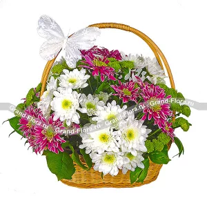 Под небом Сицилии - корзина из роз,хризантем и статицы
